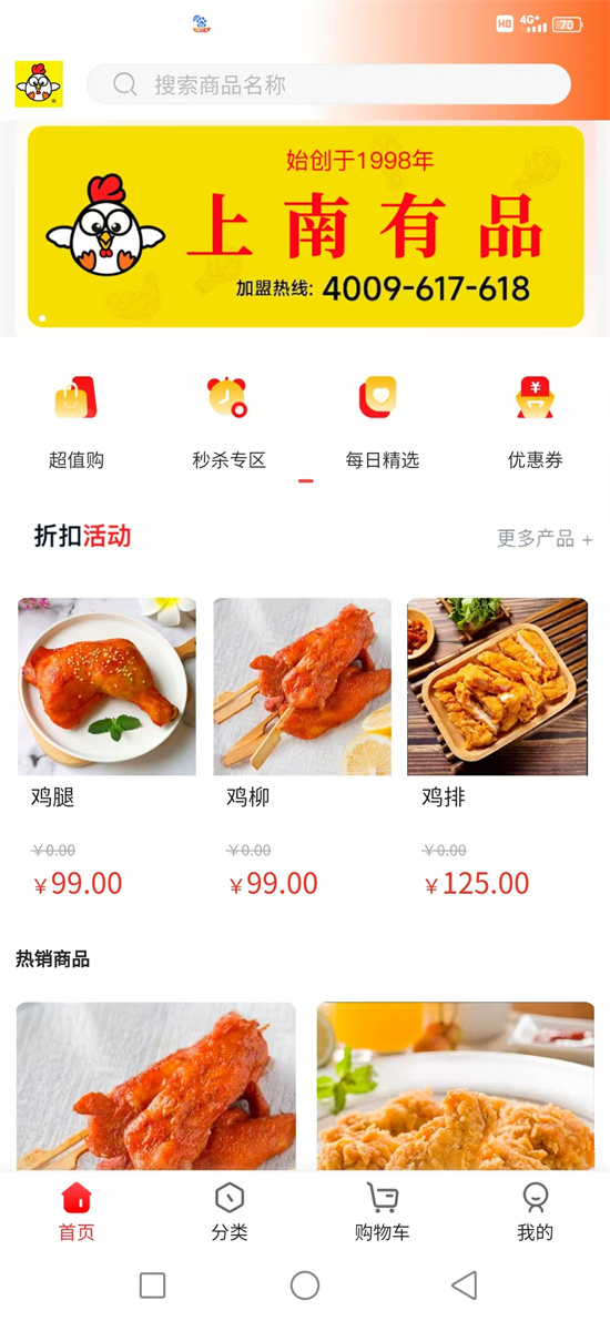 上南有品APP是一个应用于用户选择香酥鸡材料购买的一款app,该app上面所展示的商品都是上南香酥鸡就以最合适的价格,最优质 的产品提供给广大消费者,受到了众多消费者的一致认可和青睐,众多的加盟商们也是对该品牌喜爱有加。如今上南香酥鸡凭借着消费者的喜爱已经拓展了 多家加盟店,成熟的加盟模式已为无数投资者带来了不断的利润。